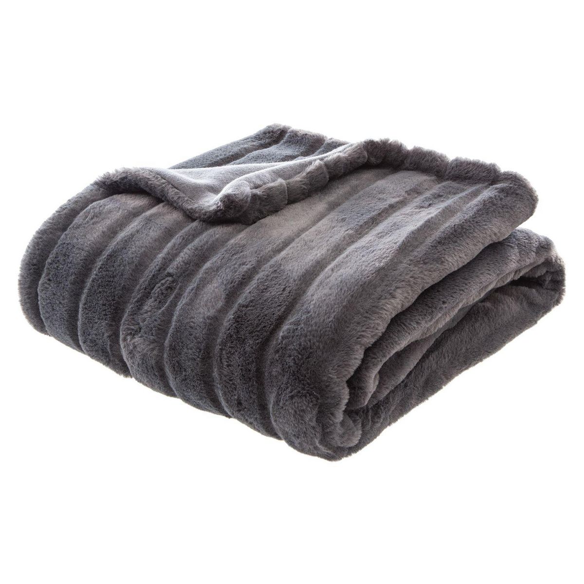 Plaid design imitiation fourrure Manoir - L. 120 x l. 160 cm - Gris foncé