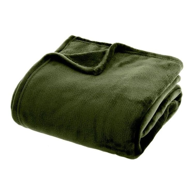 Plaid Doux Uni Flanel 130x180cm Vert Kaki