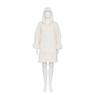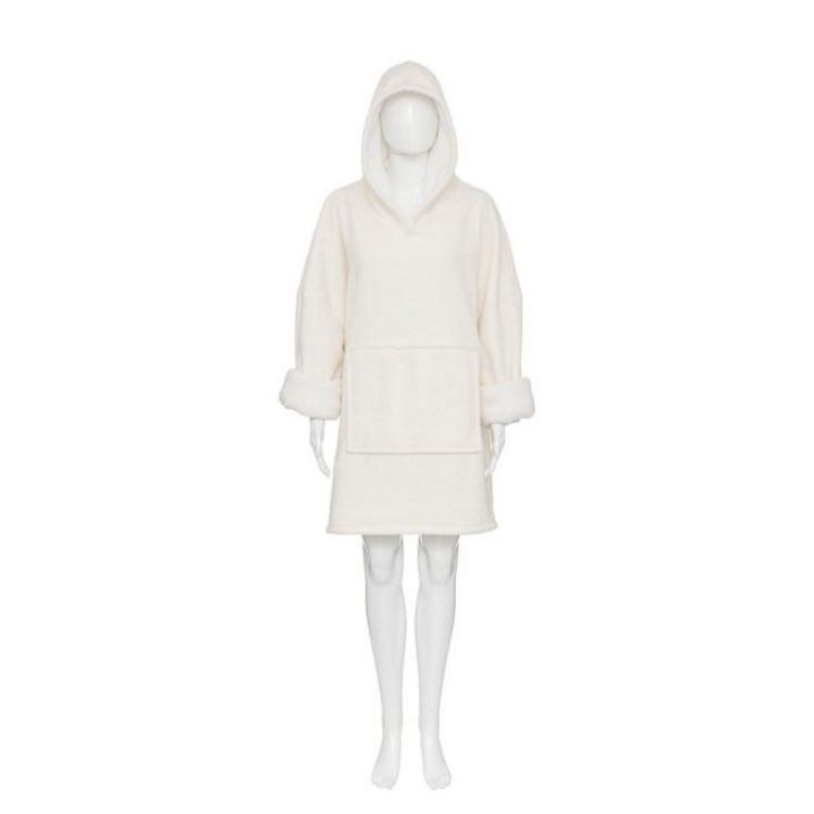 Informations Techniques : Dimensions : L. 85 x l. 1 x H. 118 cm Matière : Polyester Spécificités : Chaud & Agréable Plaid adulte Sweat manches longues Capuche et poche kangourou Texture douce effet bouclette Unisexe Poids : 0,72 kg Couleur : Ivoire
