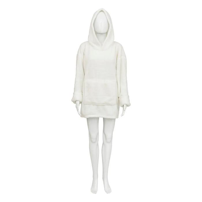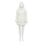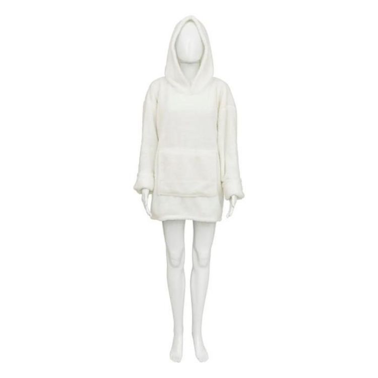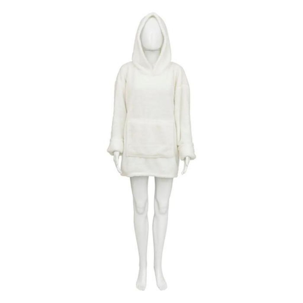Informations Techniques : Dimensions : L. 70 x l. 1 x H. 106 cm Matière : Polyester Spécificités : Doux & Confortable Plaid sweat avec capuche Poche ventrale kangourou Imitation fourrure Manches longues Taille unique Lavage à la machine à 30° Poids : 0,39 kg Couleur : Blanc