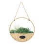 Informations Techniques : Dimensions : D. 40 x l. 6 cm Matières : PVC, Polyéthylène & Métal Spécificités : Déco & Tendance Panier tressé À suspendre Avec corde en chanvre Inscription GARDEN Forme ronde Poids : 0,88 kg Couleur : Beige
