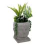 Informations Techniques : Dimensions : L. 15 x l. 15 x H. 30 cm Matières : Pot : Ciment Intérieur : Polyéthylène Corps : Polyéthylène Spécificités : Déco & Originale Pot design bouddha Forme carrée Poids : 2,4 kg Couleur : Gris