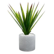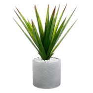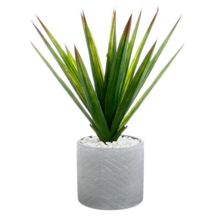 Informations Techniques : Dimensions : D. 44 x H. 47 cm Pot : D. 16 x H. 14,7 cm Matières : Polyéthylène, Céramique, Caillou & Polystyrène Spécificités : Plante Artificielle Aloe Vera Pot de forme Ronde Entretien Facile Poids : 1,317 kg Couleur : Gris & Vert