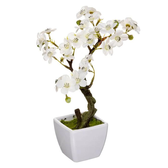Plante Artificielle en Pot Cerisier 26cm Blanc