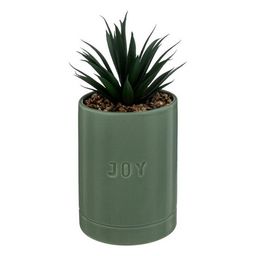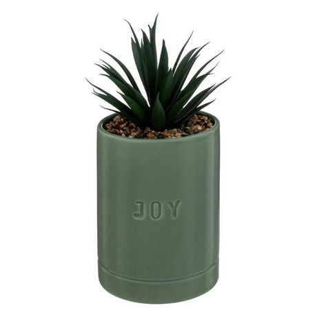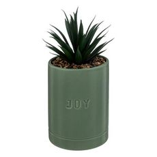 Informations Techniques : Dimensions : D. 9,5 x H. 20 cm Matières : Pot : Dolomite Intérieur : Polyéthylène & Pierre Corps : Polyéthylène Spécificités : Déco & Tendance Pot en dolomite Inscription JOY Forme ronde Poids : 0,55 kg Couleur : Vert