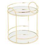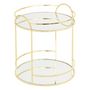 Informations Techniques : Dimensions : D. 20,5 x H. 24 cm Matières : Verre & Acier Spécificités : Déco & Chic Plateau 2 étages Design avec miroir Poids : 0,85 kg Couleur : Or