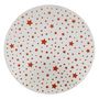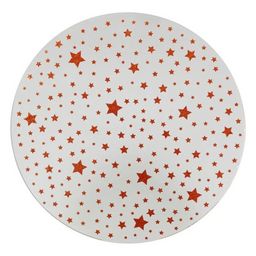 Informations Techniques : Dimensions : D. 30 x H. 0,3 cm Matière : Verre Spécificités : Déco & Pratique Plateau pour bougie Imprimé étoile Effet miroir Forme ronde Poids : 0,44 kg Couleur : Blanc & Rouge