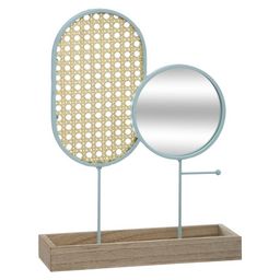 Ambiance naturelle et chic sur votre commode avec ce porte bijoux équipé d'un miroir.FICHE TECHNIQUE- Porte bijoux en MDF, fer et rotin.CARACTERISTIQUES TECHNIQUES- Dimensions : L. 30 x l. 8 x H. 31 cm.- Poids : 0,6 kg.
