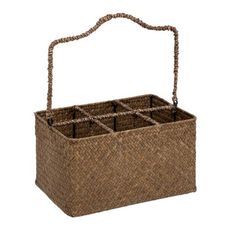 Informations Techniques : Dimensions : L. 37 x l. 20 x H. 30 cm Matières : Paille & Métal Spécificités : Pratique & Tendance Porte-bouteilles Pour ranger 6 bouteilles En paille tressée Avec poignée rotative de transport Forme rectangulaire Poids : 0,49 kg Couleur : Marron