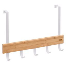 Porte serviette pour porte Natureo blancCréez une décoration moderne et intelligente dans votre salle de bain grâce au porte serviette pour porte Natureo blanc.En métal et bambou, de couleur naturel et blanc, ce porte serviette se pose directement sur le dessus d'une porte, sans besoin d'aucun outil ni visserie. S'adapte à la majorité des épaisseurs de porte. Accroches résistantes, idéal pour les serviettes volumineuses Facile et simple à installer.Informations sur le porte serviette pour porte Natureo :Dimensions : L. 40 x P. 2 x H. 29,8 cmMatière : métal, bambou5 crochetsPoids : 398 gA monter soi-même
