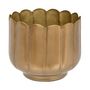 Informations Techniques : Dimensions : D. 16 x H. 14 cm Matière : Métal Spécificités : Pratique & Tendance Pot de fleurs déco Design pétales Forme ronde Poids : 0,37 kg Couleur : Or