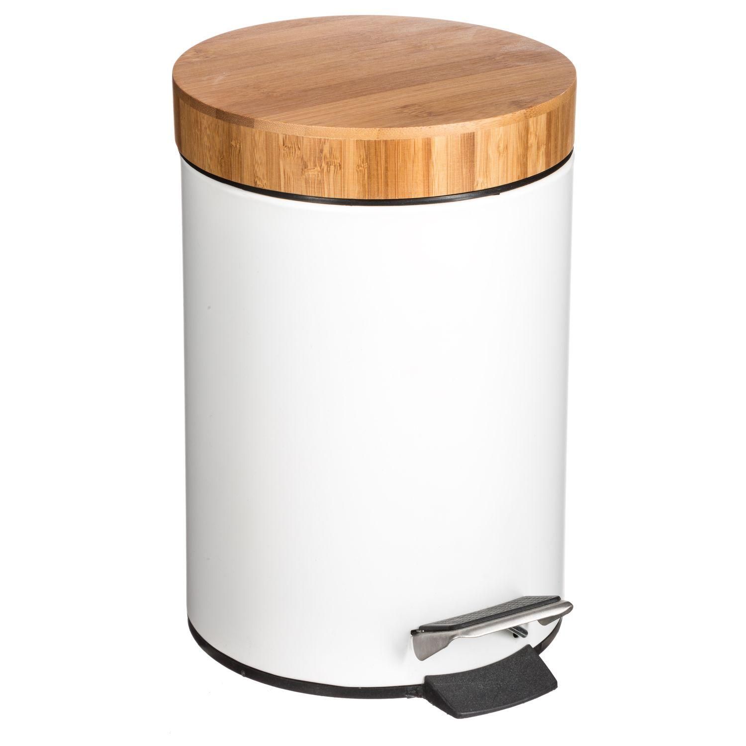 Poubelle à pédale en bambou Natureo - 3 L - Blanc