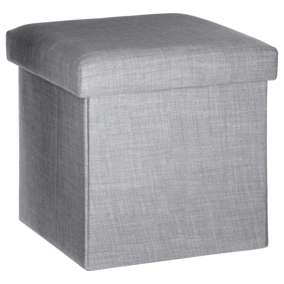 Pouf coffre pliable Tomaz - L. 38 x H. 38 cm - Gris clair