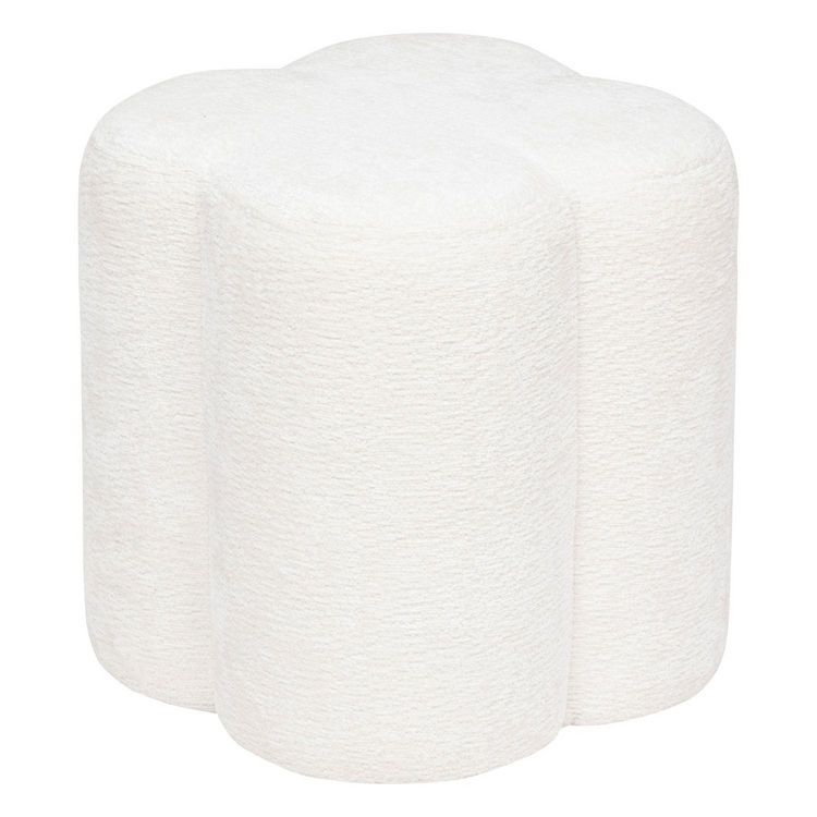 Pouf fleur en tissu chenille LAVON - Blanc