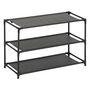 Gagnez de la place tout en ménageant votre budget grâce au range chaussures 9 paires en métal et plastique.Informations sur le range chaussures 9 paires:Dimensions : L. 57 x P. 25 x H. 39 cmComposition : acier et polypropylènePeut accueillir jusqu'à 9 paires de chaussures3 étagères en tissus, facilement lavablePoids supporté 6 kg (2 kg par étagère)Poids : 0.425 kgA monter soi-même