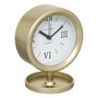 Informations Techniques : Dimensions : L. 12 x l. 9,5 x H. 15 cm Matières : Fer, Verre & MDF Spécificités : Pratique & Utile Réveil à Poser Sur Pied Style Vintage & Rétro Marque du Mouvement : Sangtai 5168 Mouvement Silencieux Fonctionne à Pile (1 x AA/LR6 non incluse) Poids : 0,26 kg Couleur : Or