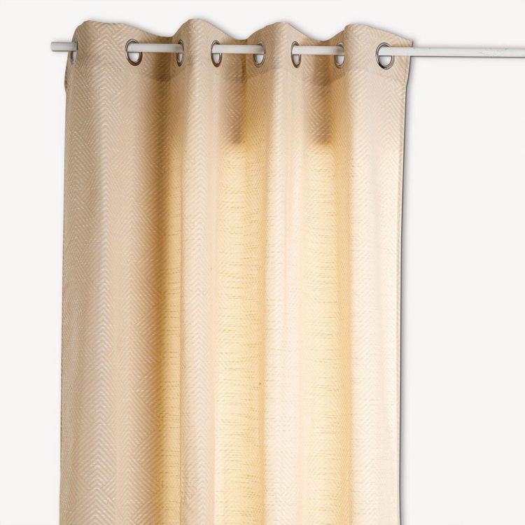 Le tissage jacquard à motif géométrique ton sur ton se mariera parfaitement avec une décoration au style ethnique chic. Le rideau Géom glissera sans effort sur votre tringle grâce à ses œillets en métal. Facile à entretenir, il passe en machine à 30°C.