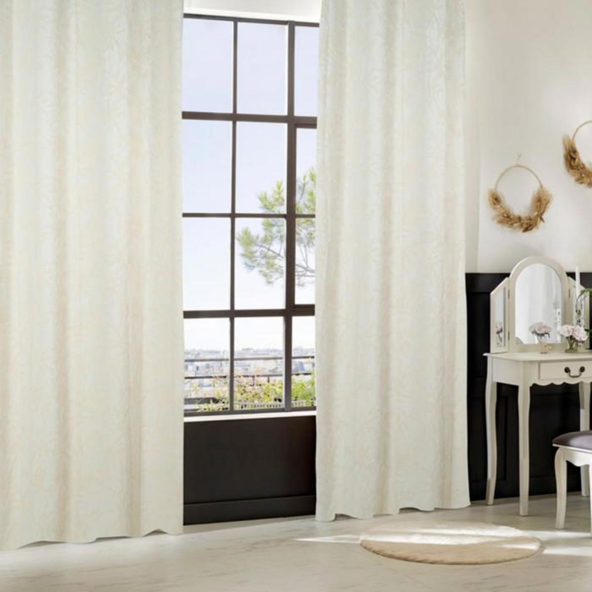 Informations Techniques : Dimensions : L. 135 x l. 0,2 x H. 260 cm Matière : Polyester Spécificités : Déco & Élégant Rideau 8 œillets Motif tufté ton sur ton Tissu jacquard Label Oeko-Tex Poids : 0,87 kg Couleur : Ivoire
