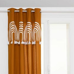 Informations Techniques : Dimensions : L. 140 x l. 0,5 x H. 260 cm Matière : Coton Spécificités : Pratique & Utile Rideau à pompons Motif arcs de cercle Poids : 0,83 kg Couleur : Moutarde