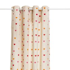 Rideau imprimé cœur en coton recyclé - 140 x 260 cm - Beige