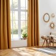 Informations Techniques : Dimensions : L. 140 x H. 260 cm Matières : Polyester & Viscose Spécificités : Design Epuré Attache sur tringle Poids : 1,200 kg Couleur : Ocre