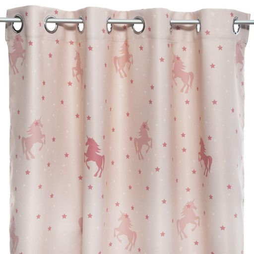 Rideau occultant imprimé licorne - 140 x 250 cm - Rose