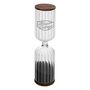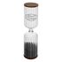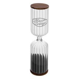 Informations Techniques : Dimensions : D. 7 x H. 30 cm Matières : Verre, MDF & Sable Spécificités : Vintage & Authentique Design en verre strié Inscription maison vintage Sable noir Forme ronde Minuterie : 30 min Poids : 0,61 kg Couleur : Transparent