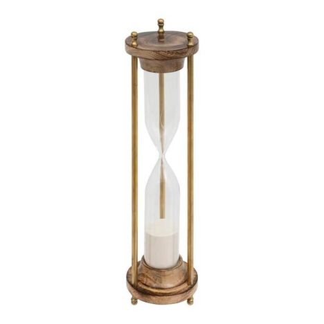 Informations Techniques : Dimensions : D. 9,5 x H. 38 cm Matières : Bois (Manguier), Verre & Sable Spécificités : Pratique & Utile Sablier déco Temps d'écoulement : environ 15 minutes Poids : 0,6 kg Couleur : Marron