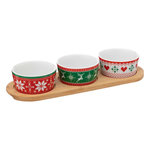 En savoir +Notre set apéritif traditionnel est conçu pour ajouter une touche festive à votre table, tout en vous offrant 3 bols pratiques pour servir vos invités. Avec ses motifs de Noël, il deviendra le point central de vos célébrations.