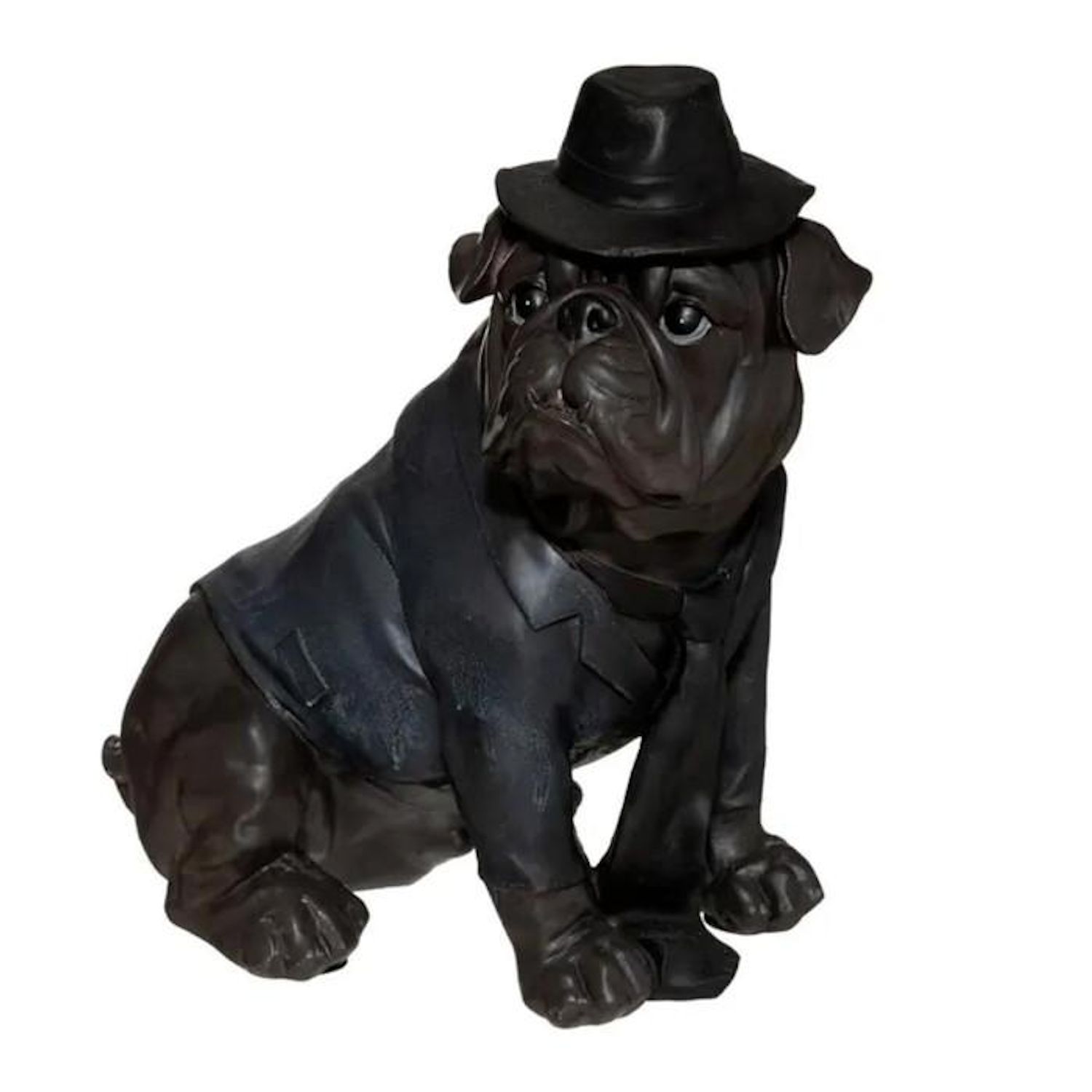Statue Chien Assis Bulldog 44cm Noir