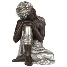 Statue Déco Bouddha 35cm Naturel & Argent