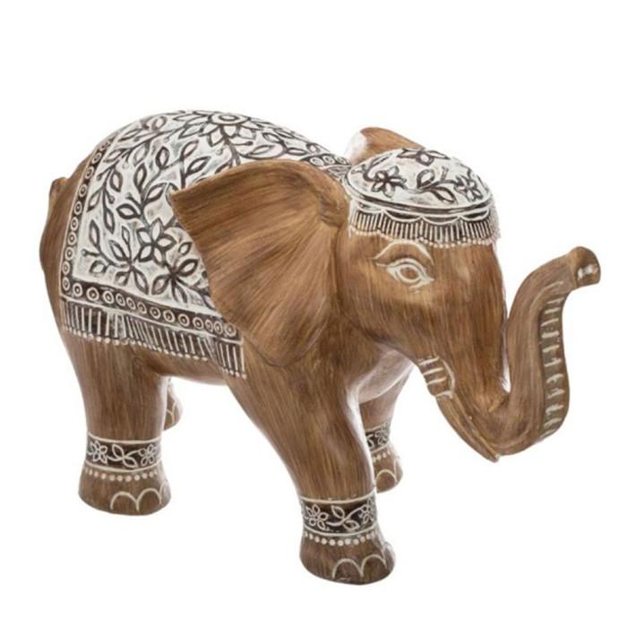 Informations Techniques : Dimensions : L. 15,8 x l. 7,5 x H. 11,5 cm Matières : Polyrésine & Pierre Spécificités : Chic & tendance Statue Eléphant à poser Motif ethnique Poids : 0,26 kg Couleur : Naturel