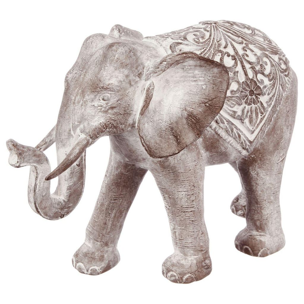 Statue Eléphant en résine - H. 30 cm - Gris effet blanchi