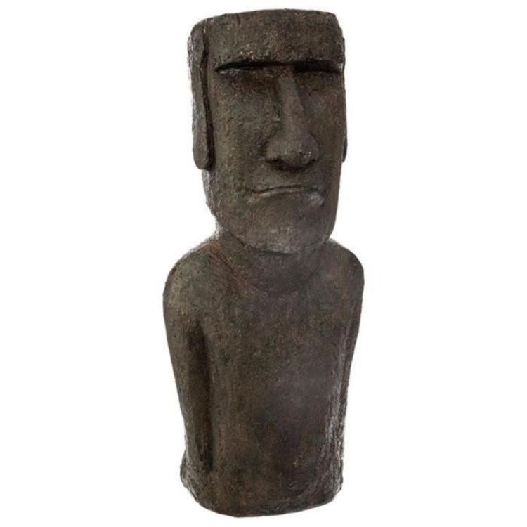 Informations Techniques : Dimensions : L. 34 x l. 26 x H. 80 cm Matière : Oxyde de Magnesium Spécificités : Déco & Tendance Statue Moaï Elément à poser Poids : 6,5 kg Couleur : Marron