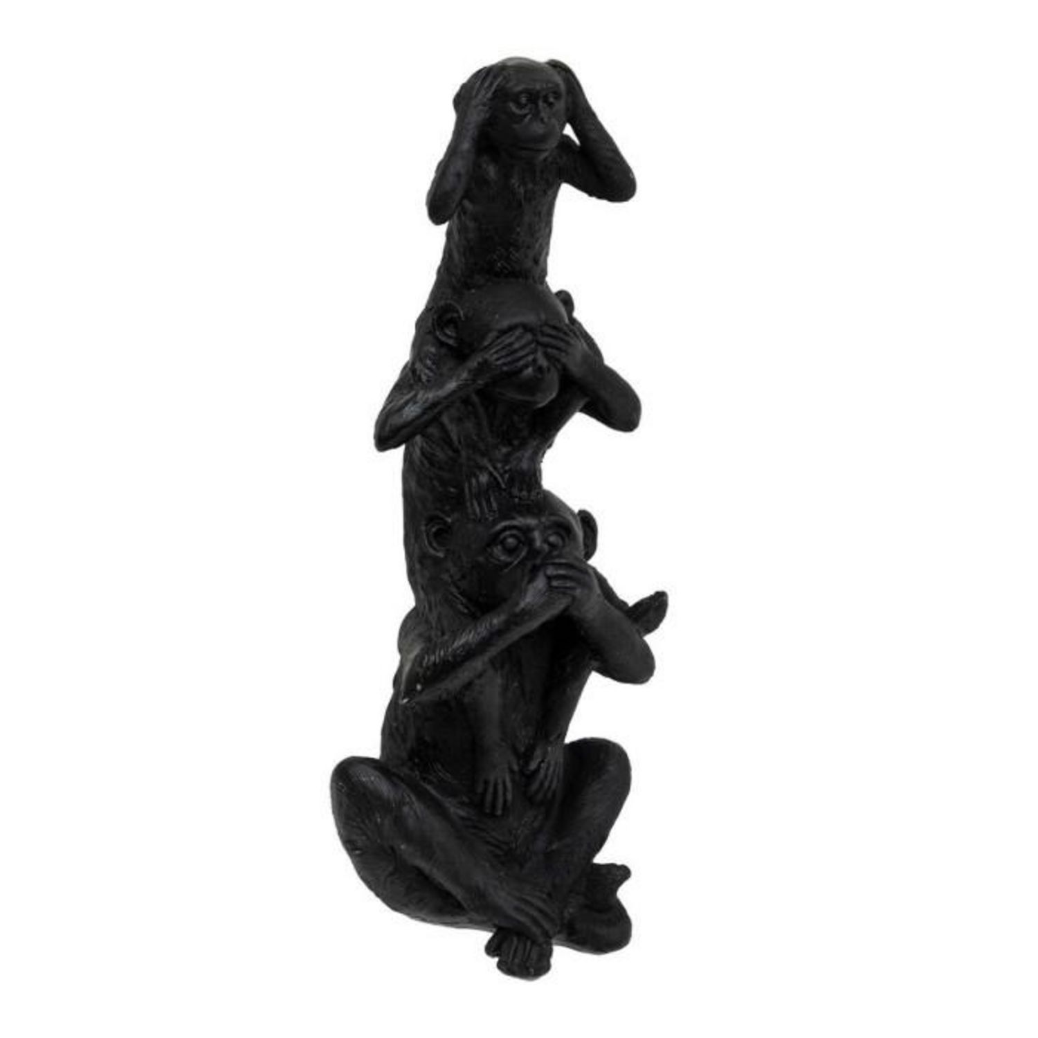 Statuette 3 Singes Exotic Panama 24cm Noir