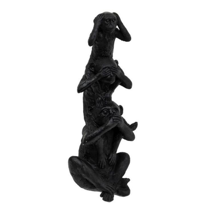 Informations Techniques : Dimensions : L. 8,4 x l. 8 x H. 24,5 cm Matière : Polyrésine Spécificités : Tendance & Déco Statuette déco Design 3 singes de la sagesse Poids : 0,27 kg Couleur : Noir