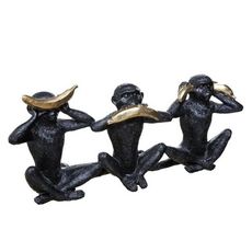 Informations Techniques : Dimensions : L. 40 x l. 10,5 x H. 17,5 cm Matière : Résine Spécificités : Pratique & Utile Statuette Déco A Poser Design 3 Singes avec Bananes Poids : 0,85 kg Couleur : Noir & Or