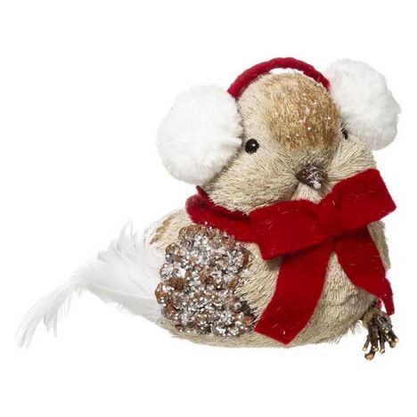 Informations Techniques : Dimensions : L. 23 x l. 21 x H. 32 cm Matières : Polystyrène, Coton & Polyester Spécificités : Pratique & Utile Statuette Déco A Poser Design Oiseau de Noël avec Cache Oreilles Poids : 0,285 kg Couleur : Beige & Rouge