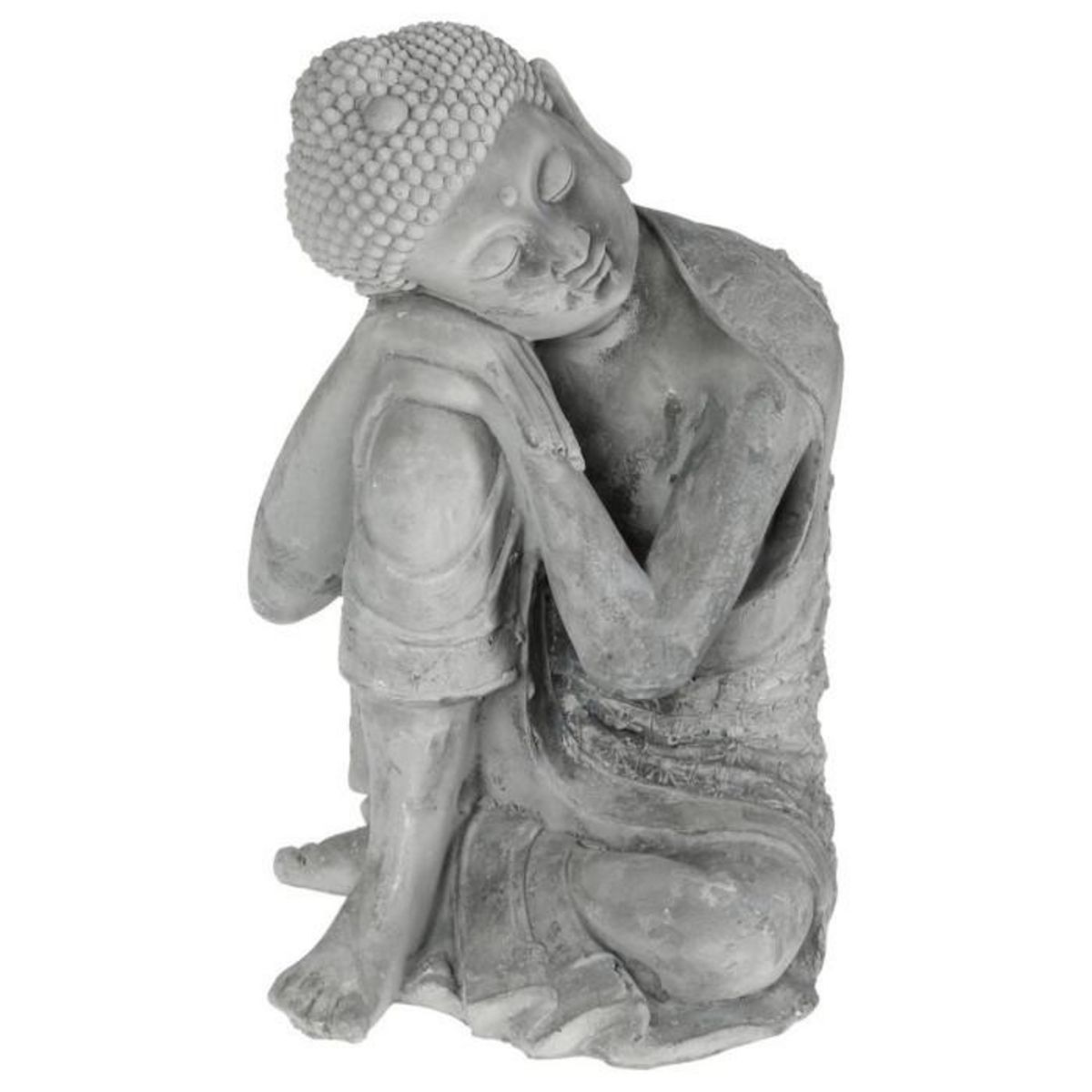 Informations Techniques : Dimensions : L. 25 x P. 23 x H. 36 cm Matière : Ciment Spécificités : Statuette déco Forme Bouddha Assis Poids : 8,473 kg Couleur : Gris