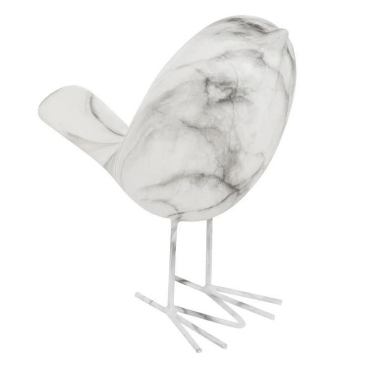 Informations Techniques : Dimensions : L. 16 x l. 7,2 x H. 19 cm Matière : Grès Spécificités : Moderne & Originale Statuette oiseau déco Imprimé marbre Poids : 0,28 kg Couleur : Blanc