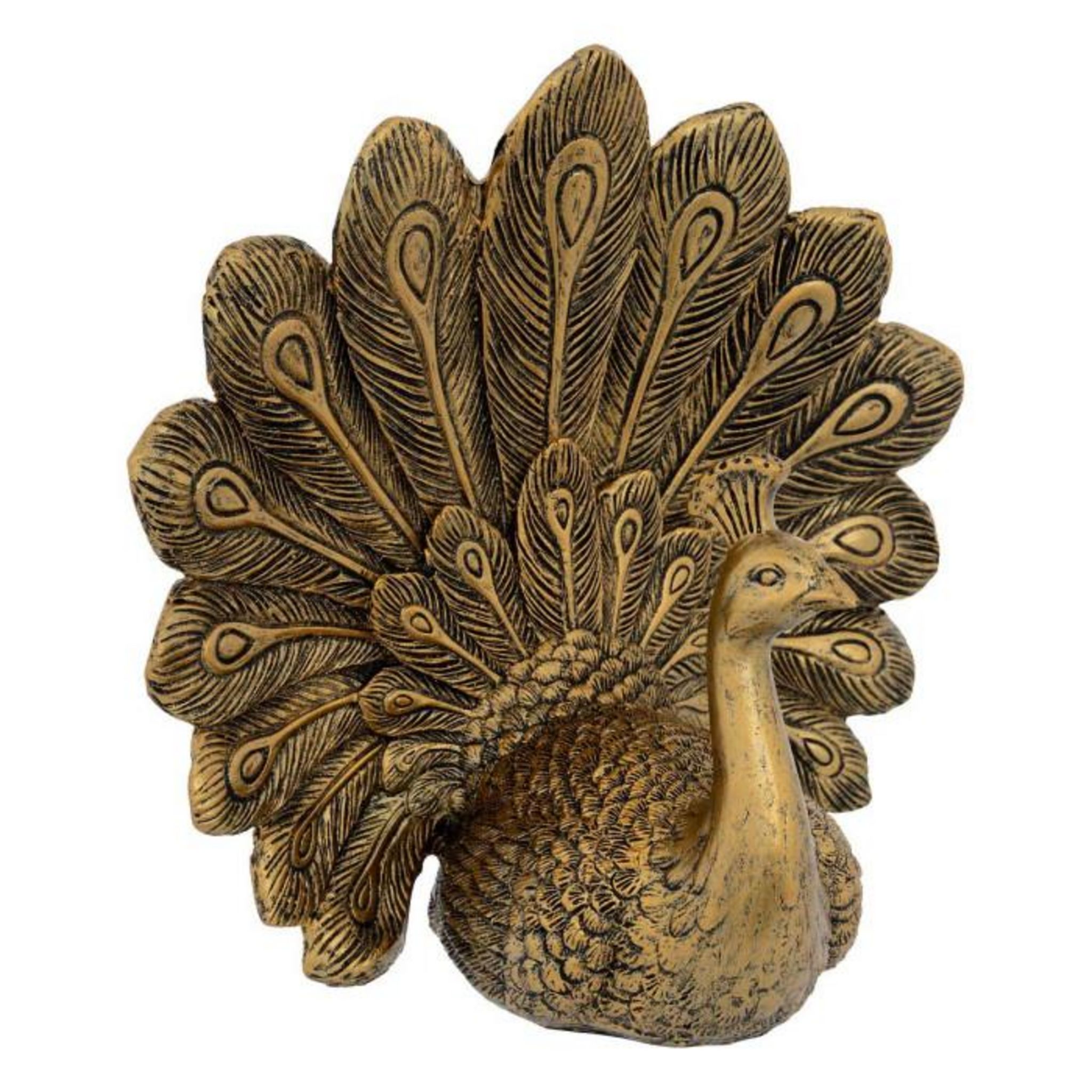 Statuette Oiseau Paon en Résine Wild Romance 27cm Doré