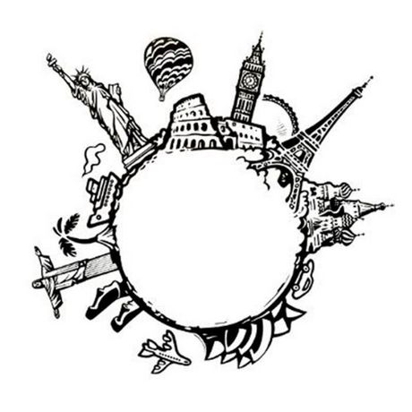 Sticker Plat Déco Monde 60cm Noir & Blanc