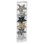 Informations Techniques : Dimensions : L. 6,5 x l. 3 x H. 7 cm Boîte : L. 6,5 x l. 3 x H. 27,5 cm Matière : PVC Spécificités : Pratique & Utile Sujet de Noël A Suspendre Design 6 Étoiles Effet Brillant & Mat Avec Paillettes Boîte incluse Poids : 0,027 kg Couleur : Bleu, Champagne & Gris