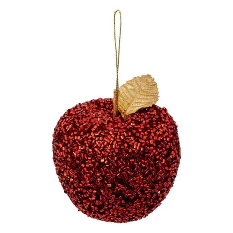 Informations Techniques : Dimensions : D. 8,5 x H. 9 cm Matières : PET & Polystyrène Spécificités : Déco & Festif Sujet de Noël à suspendre Design pomme Avec perles Poids : 0,01 kg Couleur : Rouge