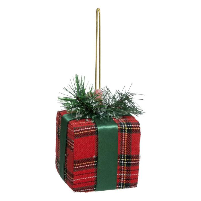 Informations Techniques : Dimensions : L. 8 x l. 8 x H. 12 cm Matières : Polyester & Polypropylène Spécificités : Déco & Festif Sujet cadeau de Noël Imprimé tartan À suspendre Poids : 0,02 kg Couleur : Rouge