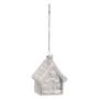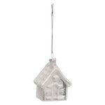 Informations Techniques : Dimensions : L. 6 x l. 5,6 x H. 6,7 cm Matière : Verre Spécificités : Pratique & Utile Sujet de Noël A Suspendre Design Chalet Poids : 0,023 kg Couleur : Blanc