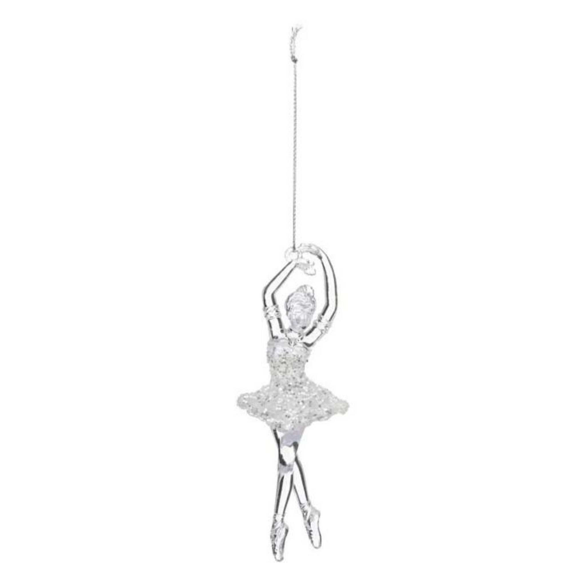 Informations Techniques : Dimensions : L. 5 x l. 2 x H. 13,5 cm Matières : Polystyrène & PET Spécificités : Déco & Élégant Sujet de Noël à suspendre Design danseuse altique Poids : 0,01 kg Couleur : Blanc