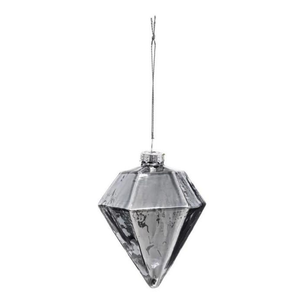 Informations Techniques : Dimensions : L. 7,5 x l. 7,5 x H. 9,3 cm Matière : Verre Spécificités : Pratique & Utile Sujet de Noël A Suspendre Design Diamant Poids : 0,014 kg Couleur : Argent