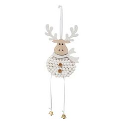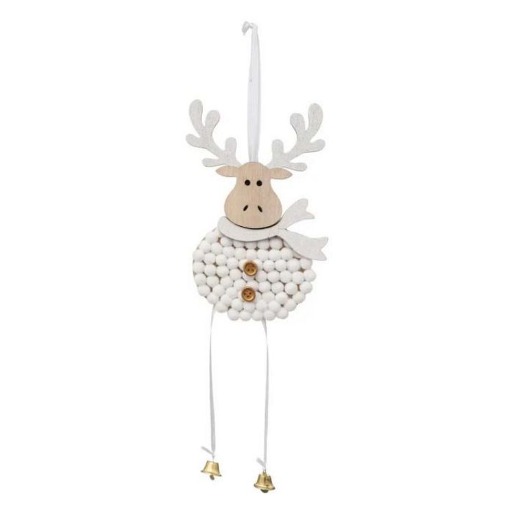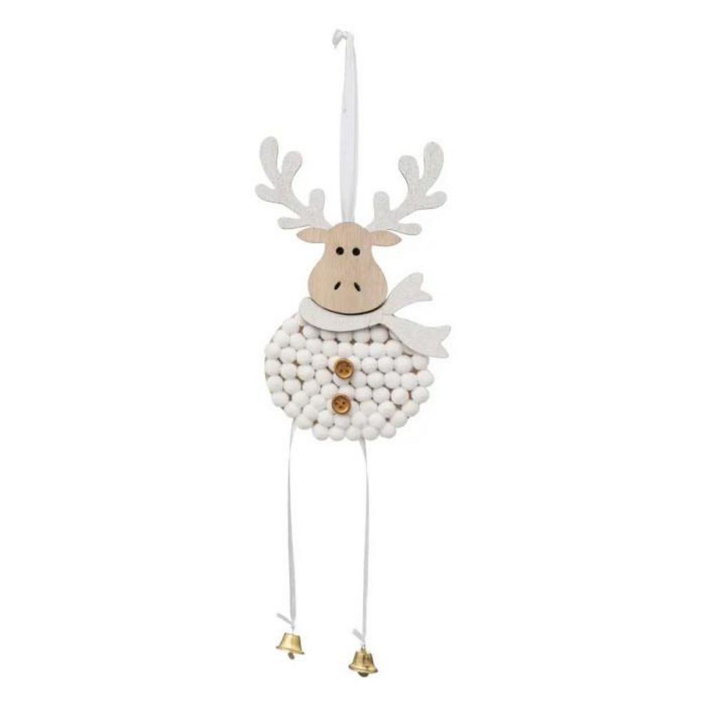 Informations Techniques : Dimensions : L. 11 x l. 2 x H. 30 cm Matières : Bois (Contreplaqué) & Polyester Spécificités : Original & Festif Sujet de Noël à suspendre Design renne de Noël Poids : 0,04 kg Couleur : Blanc