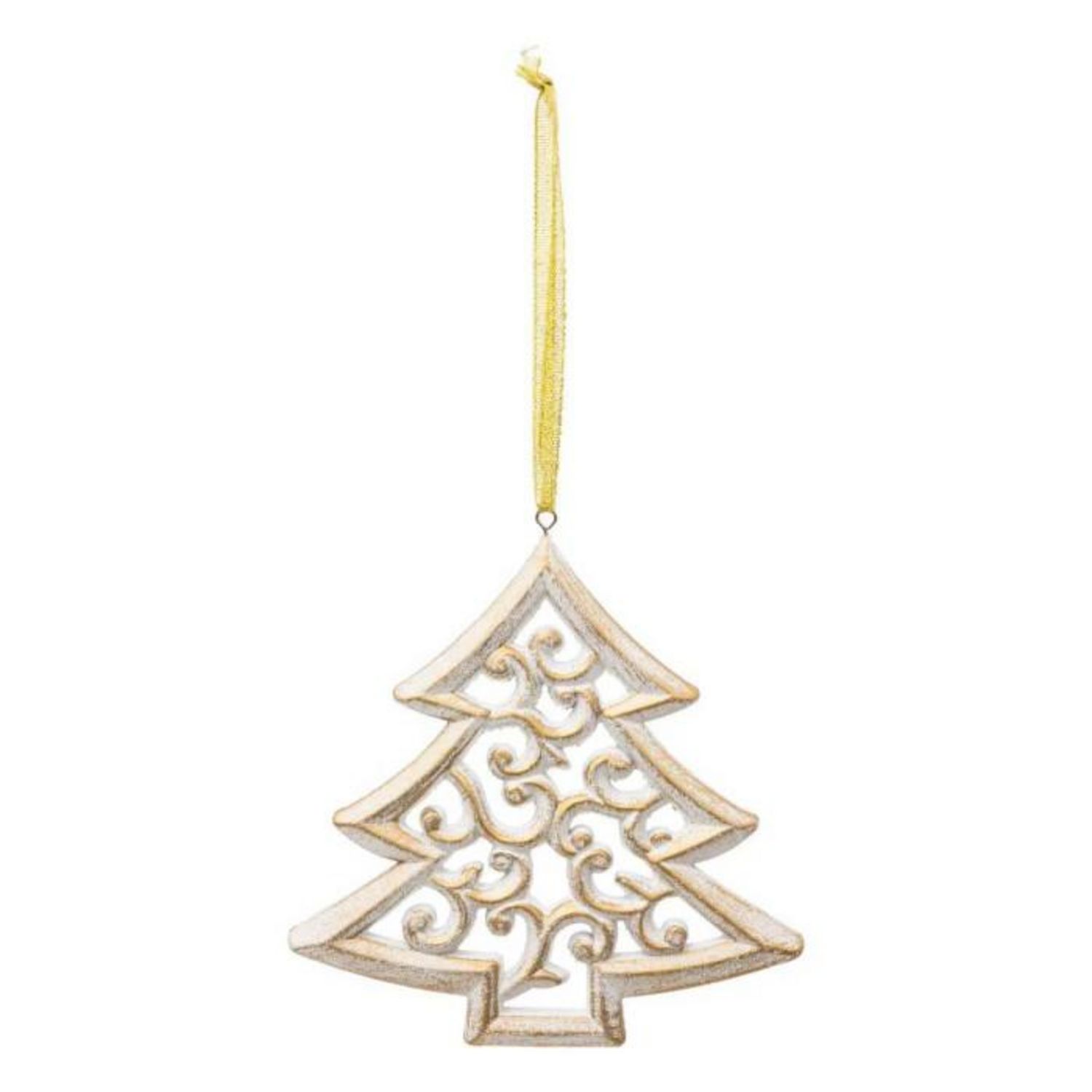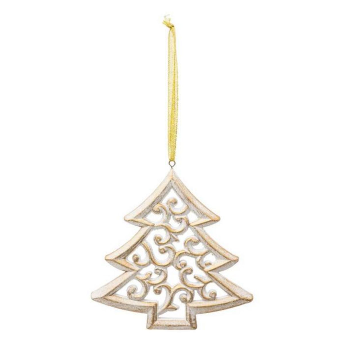 Informations Techniques : Dimensions : L. 14,5 x H. 14,5 cm Matière : MDF Spécificités : Déco & Festif Sujet de Noël à suspendre Design sapin de Noël Avec motif arabesque Poids : 0,05 kg Couleur : Blanc